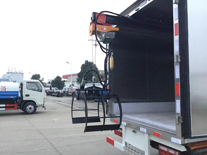 自動抓吊系統:病死豬運輸車是由廂體加裝的電動葫蘆進行抓吊,實現病死豬從地面到廂體內部的起吊工作,避免病死豬長期與人接觸,電動葫蘆的起重重量為:300kg-1000kg。