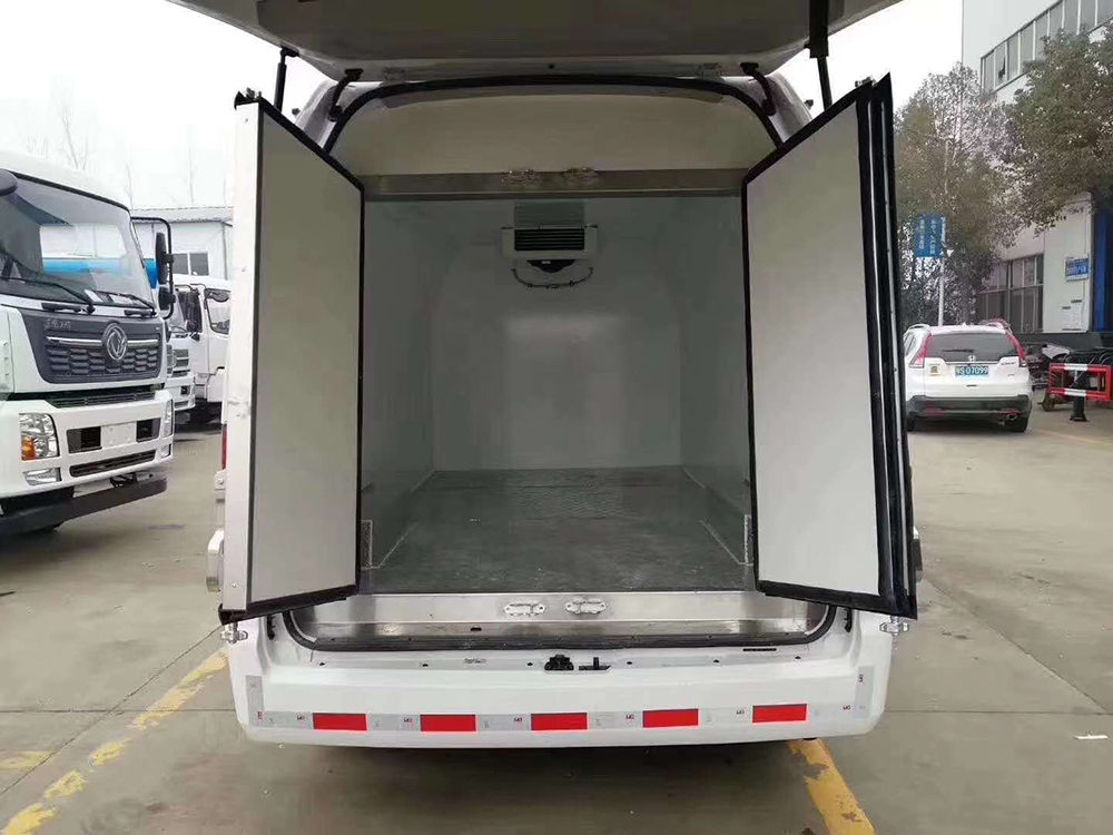 三、選裝配置:可選裝廂體側門(單側門或雙開門),可選裝鋁合金導風槽(導風槽有助于冷氣循環,提升制冷效果),可選裝廂體頂部加固肉勾滑道(直滑道 或 對接互通式拐彎滑道)??蛇x裝廂體內部采用全面不銹鋼材質(海鮮運輸必須加裝,海水有腐蝕性),可選裝280V-380V外接電源(停車熄火后可插電冷機繼續制冷工作),可選裝溫濕度監控記錄儀(帶打印功能)。
