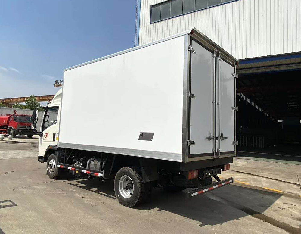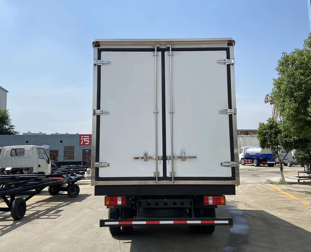 三、選裝配置:可選裝廂體側門(單側門或雙開門),可選裝鋁合金導風槽(導風槽有助于冷氣循環,提升制冷效果),可選裝廂體頂部加固肉勾滑道(直滑道 或 對接互通式拐彎滑道)。可選裝廂體內部采用全面不銹鋼材質(海鮮運輸必須加裝,海水有腐蝕性),可選裝280V-380V外接電源(停車熄火后可插電冷機繼續制冷工作),可選裝溫濕度監控記錄儀(帶打印功能)。