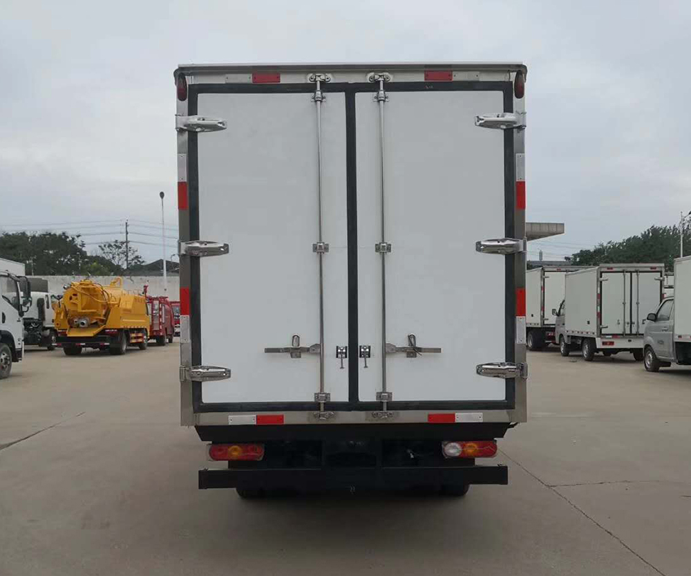 三、選裝配置:可選裝廂體側(cè)門(mén)(單側(cè)門(mén)或雙開(kāi)門(mén)),可選裝鋁合金導(dǎo)風(fēng)槽(導(dǎo)風(fēng)槽有助于冷氣循環(huán),提升制冷效果),可選裝廂體頂部加固肉勾滑道(直滑道 或 對(duì)接互通式拐彎滑道)??蛇x裝廂體內(nèi)部采用全面不銹鋼材質(zhì)(海鮮運(yùn)輸必須加裝,海水有腐蝕性),可選裝280V-380V外接電源(停車(chē)熄火后可插電冷機(jī)繼續(xù)制冷工作),可選裝溫濕度監(jiān)控記錄儀(帶打印功能)。