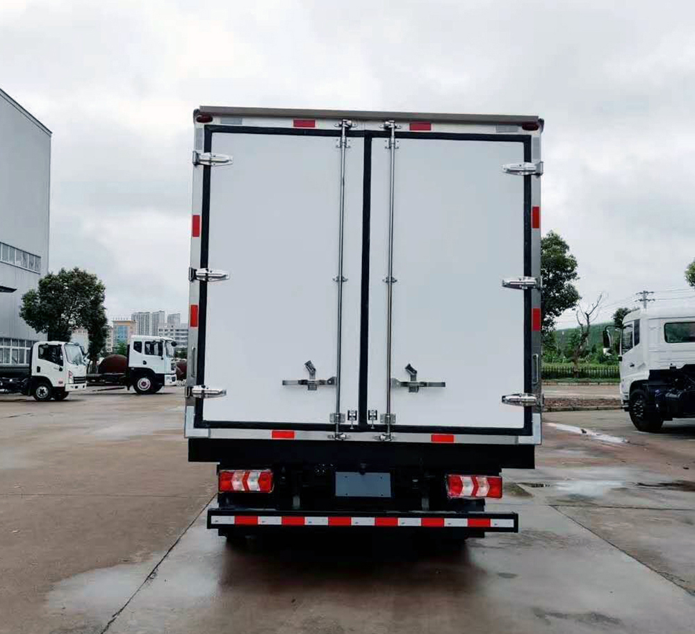 三、選裝配置:可選裝廂體側門(單側門或雙開門),可選裝鋁合金導風槽(導風槽有助于冷氣循環,提升制冷效果),可選裝廂體頂部加固肉勾滑道(直滑道 或 對接互通式拐彎滑道)。可選裝廂體內部采用全面不銹鋼材質(海鮮運輸必須加裝,海水有腐蝕性),可選裝280V-380V外接電源(停車熄火后可插電冷機繼續制冷工作),可選裝溫濕度監控記錄儀(帶打印功能)。