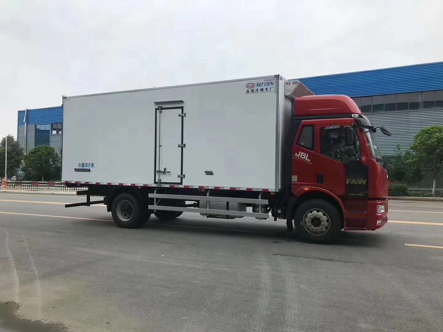 三、選裝配置:可選裝廂體側門(單側門或雙開門),可選裝鋁合金導風槽(導風槽有助于冷氣循環,提升制冷效果),可選裝廂體頂部加固肉勾滑道(直滑道 或 對接互通式拐彎滑道)。可選裝廂體內部采用全面不銹鋼材質(海鮮運輸必須加裝,海水有腐蝕性),可選裝280V-380V外接電源(停車熄火后可插電冷機繼續制冷工作),可選裝溫濕度監控記錄儀(帶打印功能)。