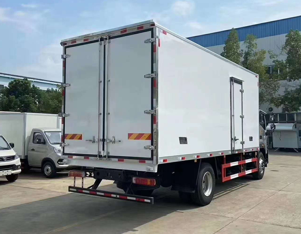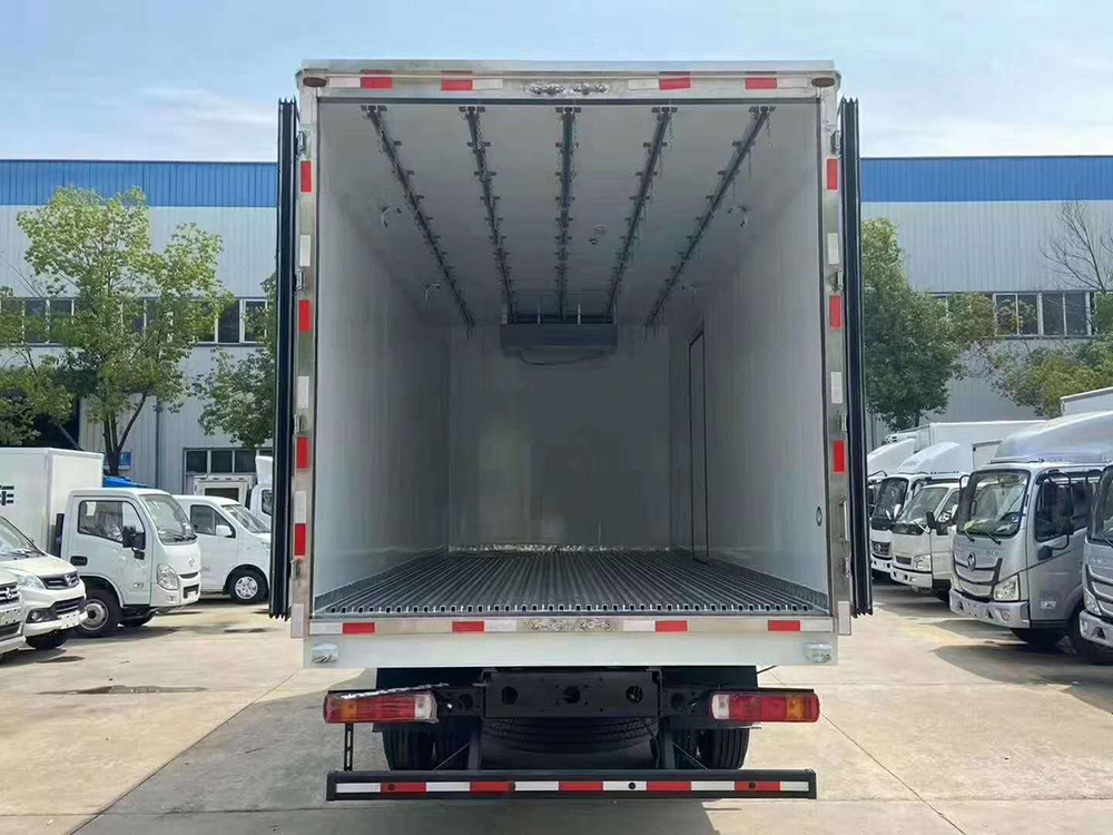 三、選裝配置:可選裝廂體側門(單側門或雙開門),可選裝鋁合金導風槽(導風槽有助于冷氣循環,提升制冷效果),可選裝廂體頂部加固肉勾滑道(直滑道 或 對接互通式拐彎滑道)。可選裝廂體內部采用全面不銹鋼材質(海鮮運輸必須加裝,海水有腐蝕性),可選裝280V-380V外接電源(停車熄火后可插電冷機繼續制冷工作),可選裝溫濕度監控記錄儀(帶打印功能)。