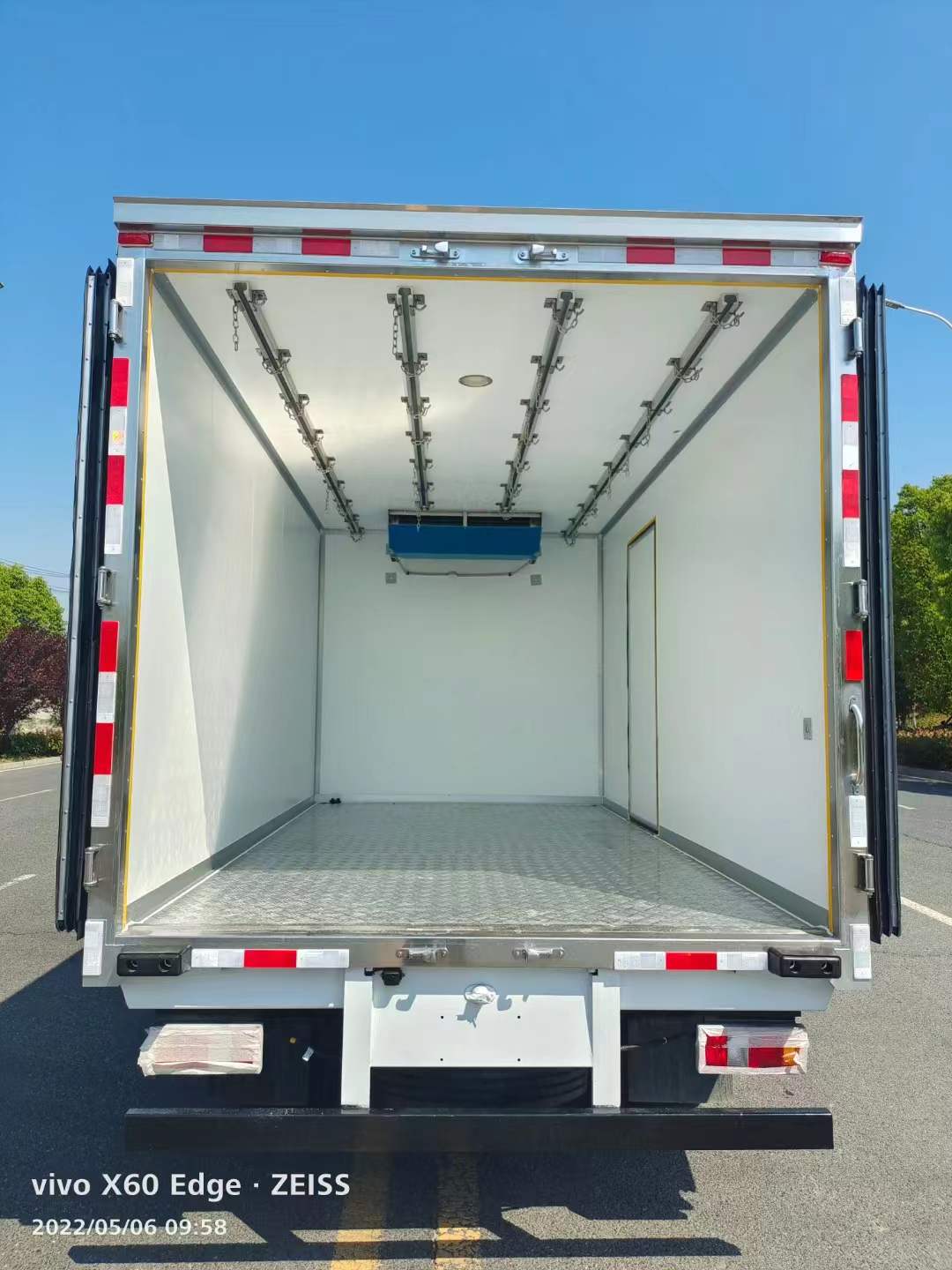 一、廂體配置:我公司面包式冷藏車工藝采用專用模具壓制成型,保溫性能達到國家A級標準,保溫材料為無縫隙填充聚氨酯發泡,廂體內外采用高強度玻璃鋼板材質,樹脂膠無縫連接,后配全密封雙開門,不銹鋼門框包邊,不銹鋼合頁和鎖件,廂體內部加裝LED夜間照明燈。