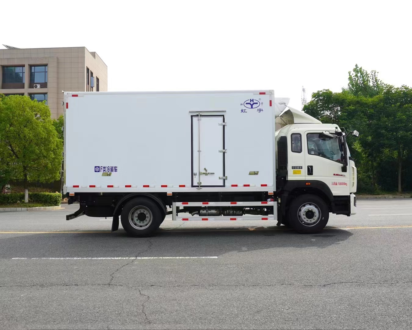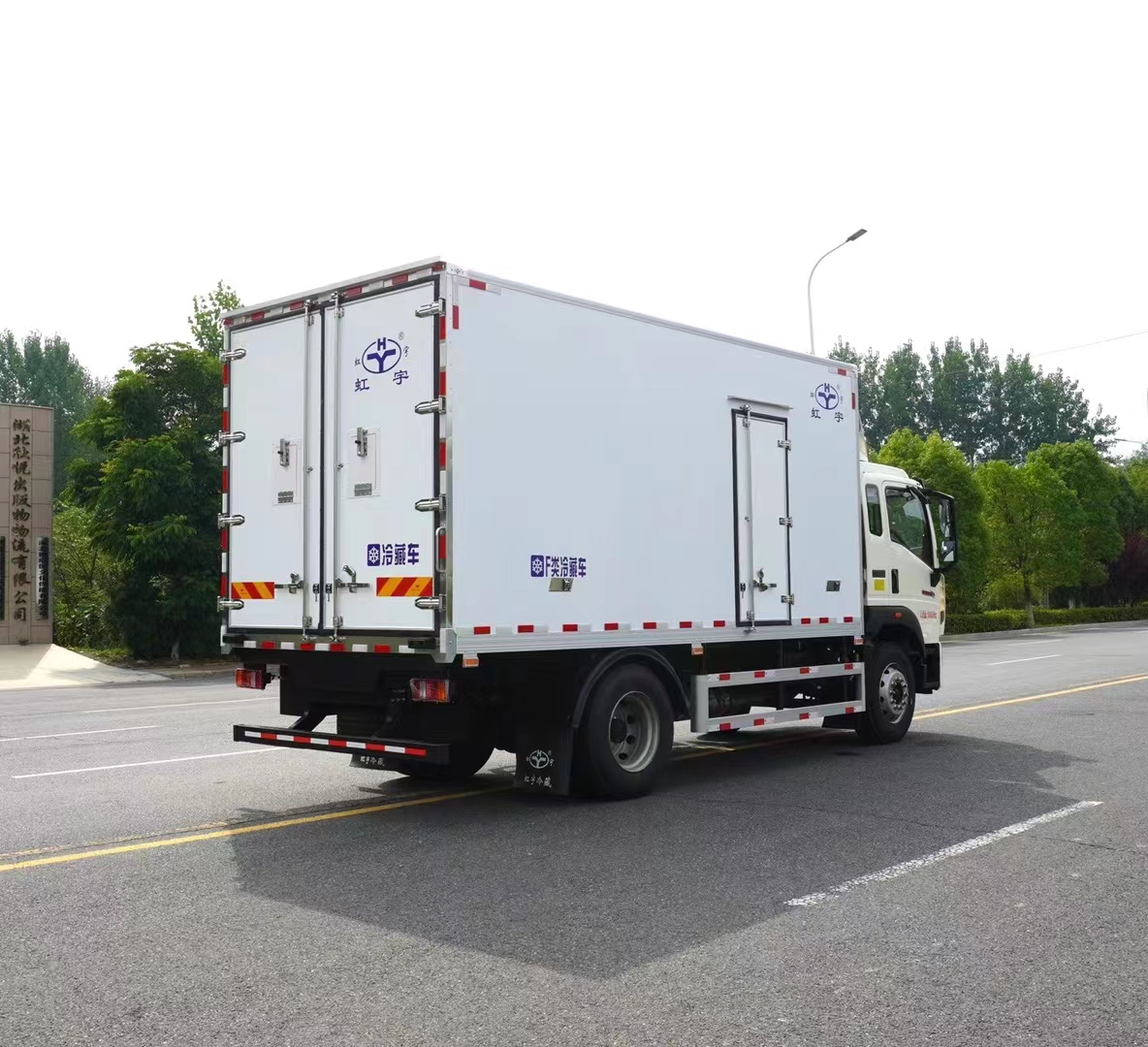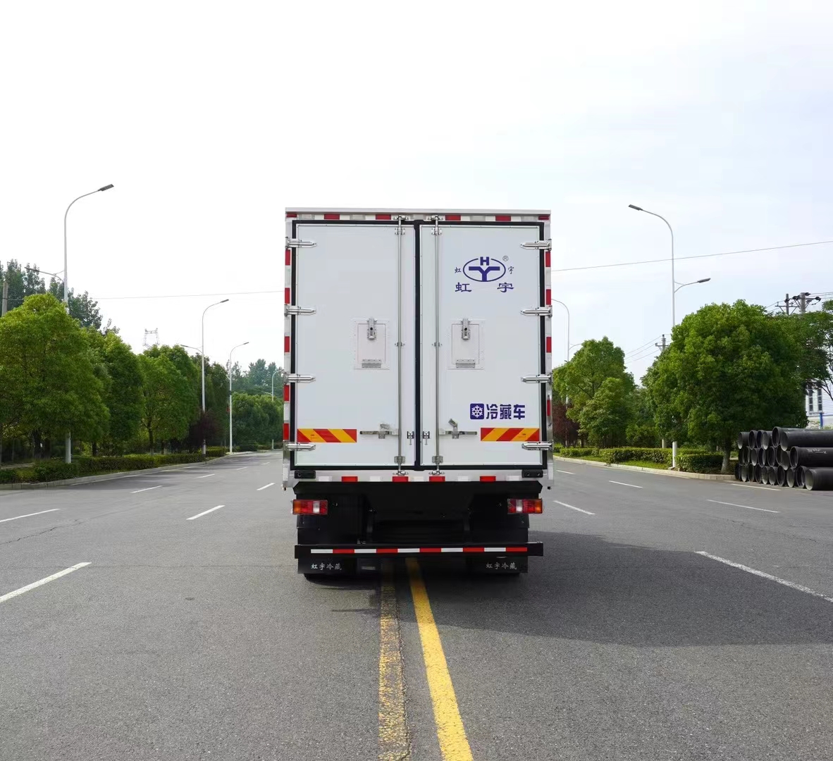 三、選裝配置:可選裝廂體側門(單側門或雙開門),可選裝鋁合金導風槽(導風槽有助于冷氣循環,提升制冷效果),可選裝廂體頂部加固肉勾滑道(直滑道 或 對接互通式拐彎滑道)。可選裝廂體內部采用全面不銹鋼材質(海鮮運輸必須加裝,海水有腐蝕性),可選裝280V-380V外接電源(停車熄火后可插電冷機繼續制冷工作),可選裝溫濕度監控記錄儀(帶打印功能)。