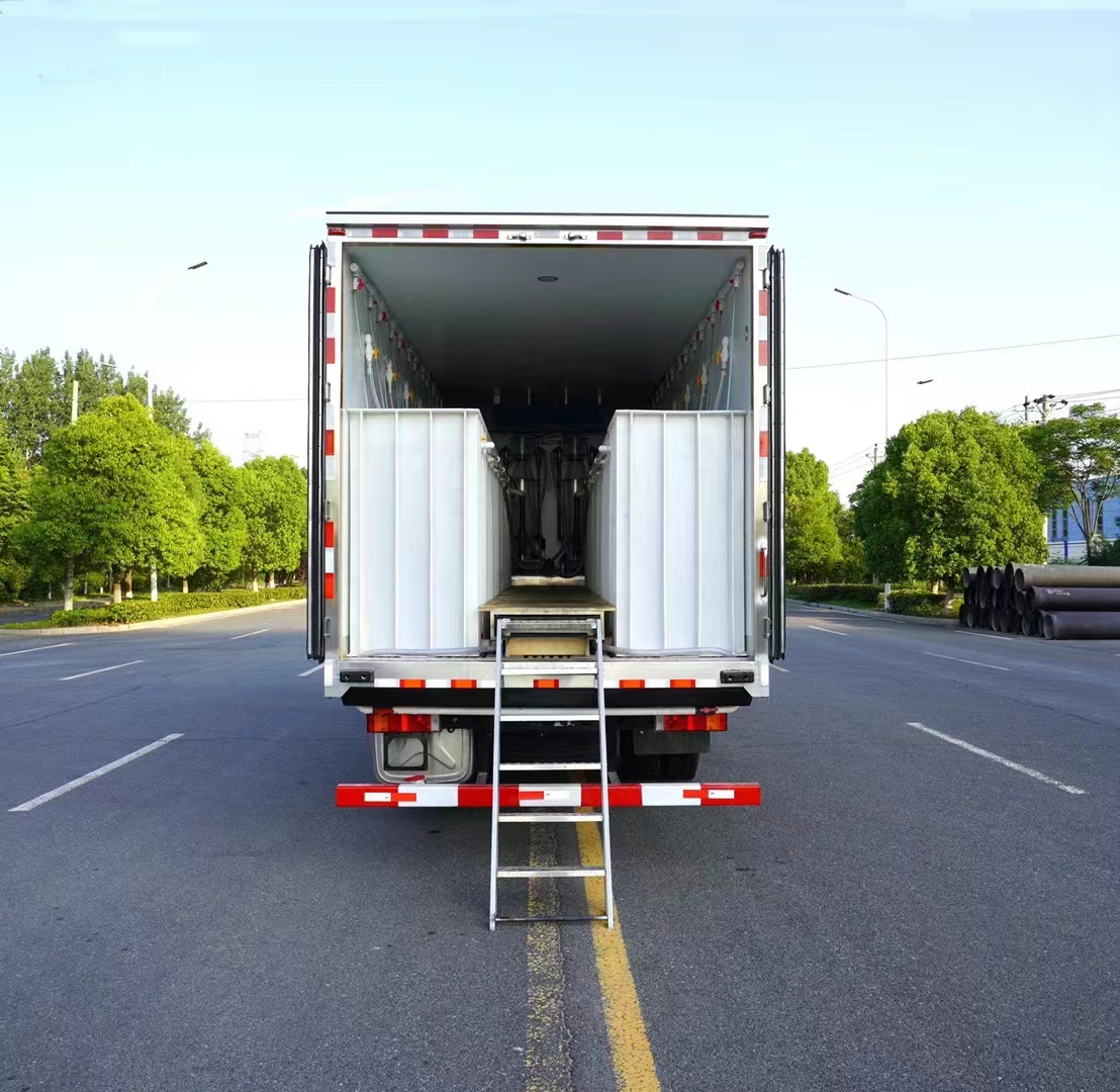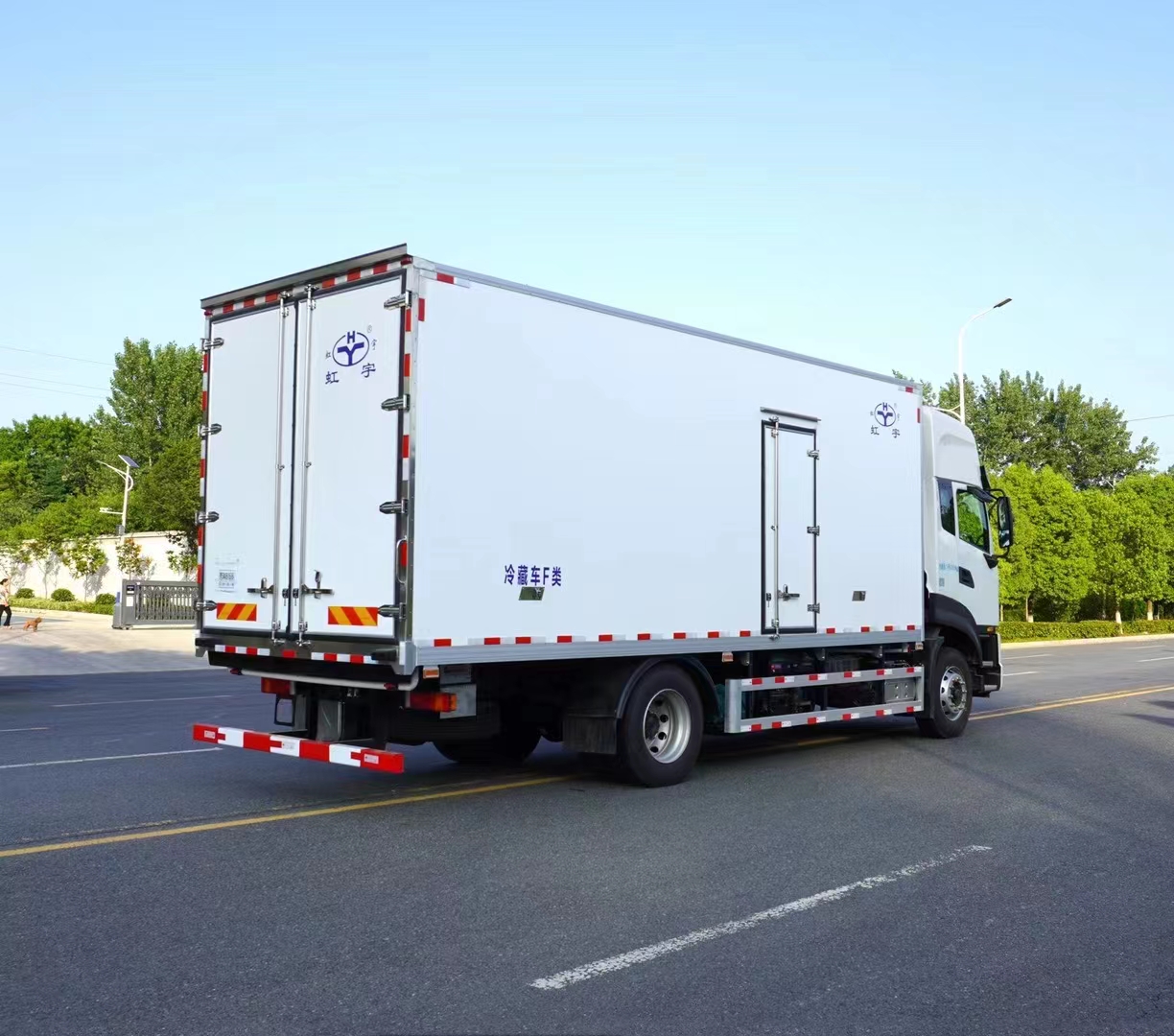三、選裝配置:可選裝廂體側門(單側門或雙開門),可選裝鋁合金導風槽(導風槽有助于冷氣循環,提升制冷效果),可選裝廂體頂部加固肉勾滑道(直滑道 或 對接互通式拐彎滑道)。可選裝廂體內部采用全面不銹鋼材質(海鮮運輸必須加裝,海水有腐蝕性),可選裝280V-380V外接電源(停車熄火后可插電冷機繼續制冷工作),可選裝溫濕度監控記錄儀(帶打印功能)。