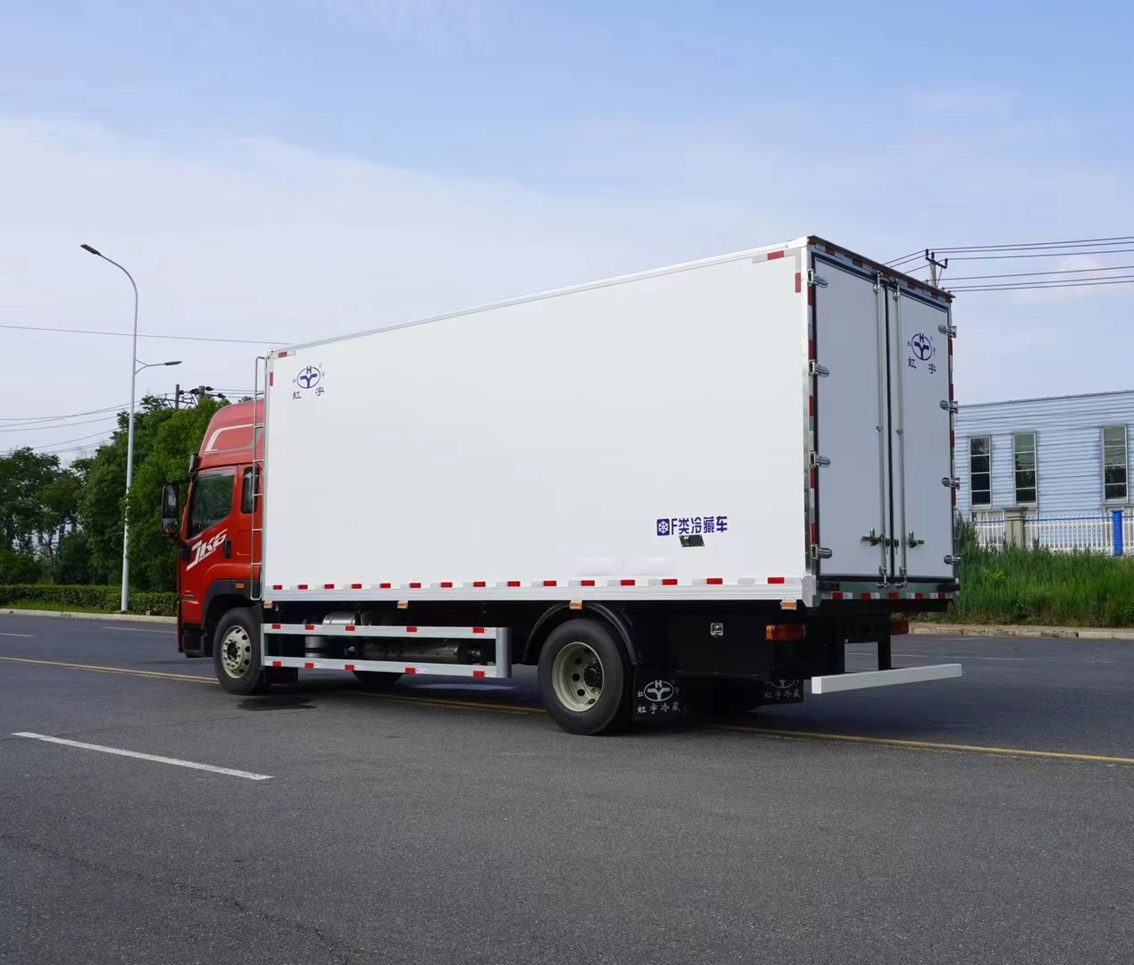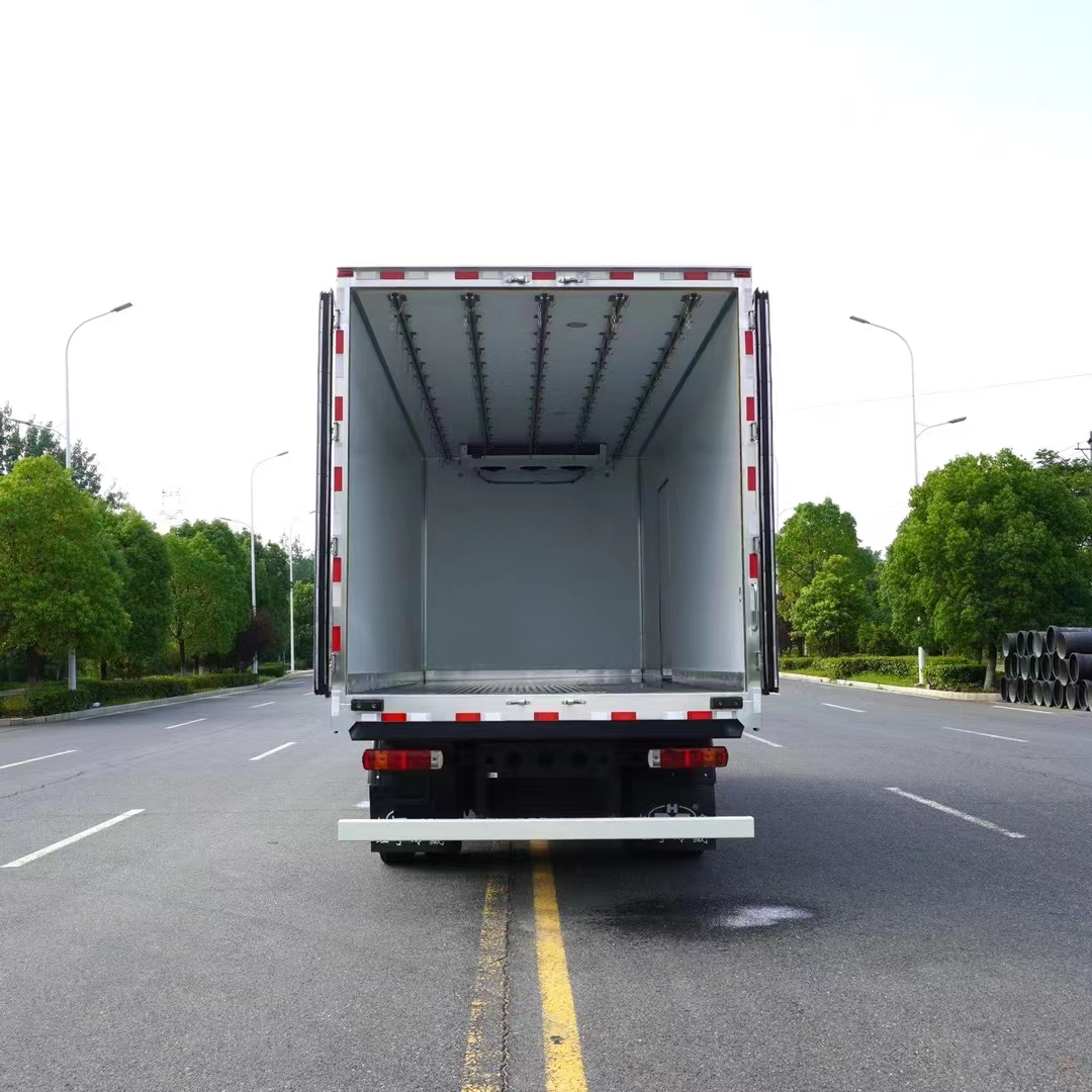 三、選裝配置:可選裝廂體側門(單側門或雙開門),可選裝鋁合金導風槽(導風槽有助于冷氣循環,提升制冷效果),可選裝廂體頂部加固肉勾滑道(直滑道 或 對接互通式拐彎滑道)。可選裝廂體內部采用全面不銹鋼材質(海鮮運輸必須加裝,海水有腐蝕性),可選裝280V-380V外接電源(停車熄火后可插電冷機繼續制冷工作),可選裝溫濕度監控記錄儀(帶打印功能)。