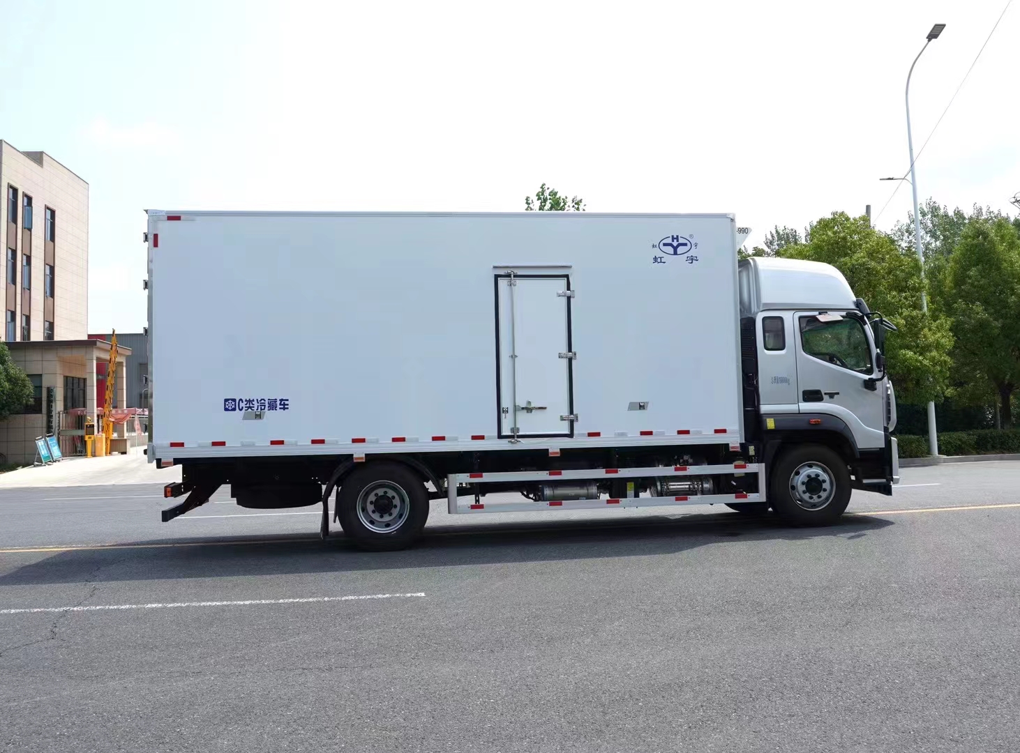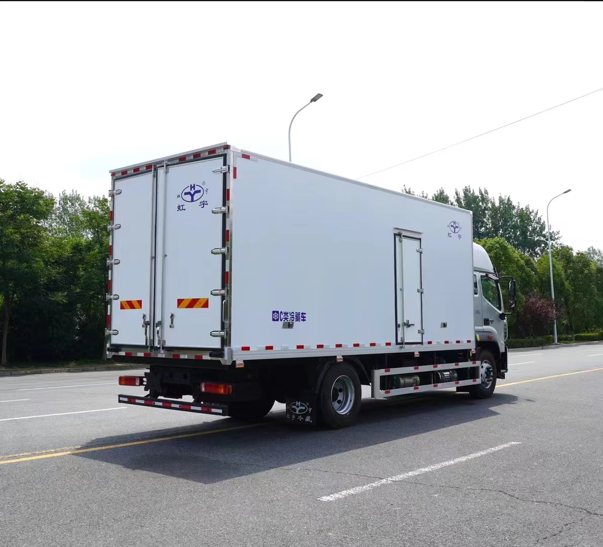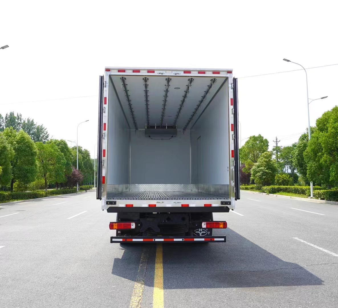 三、選裝配置:可選裝廂體側門(單側門或雙開門),可選裝鋁合金導風槽(導風槽有助于冷氣循環,提升制冷效果),可選裝廂體頂部加固肉勾滑道(直滑道 或 對接互通式拐彎滑道)。可選裝廂體內部采用全面不銹鋼材質(海鮮運輸必須加裝,海水有腐蝕性),可選裝280V-380V外接電源(停車熄火后可插電冷機繼續制冷工作),可選裝溫濕度監控記錄儀(帶打印功能)。