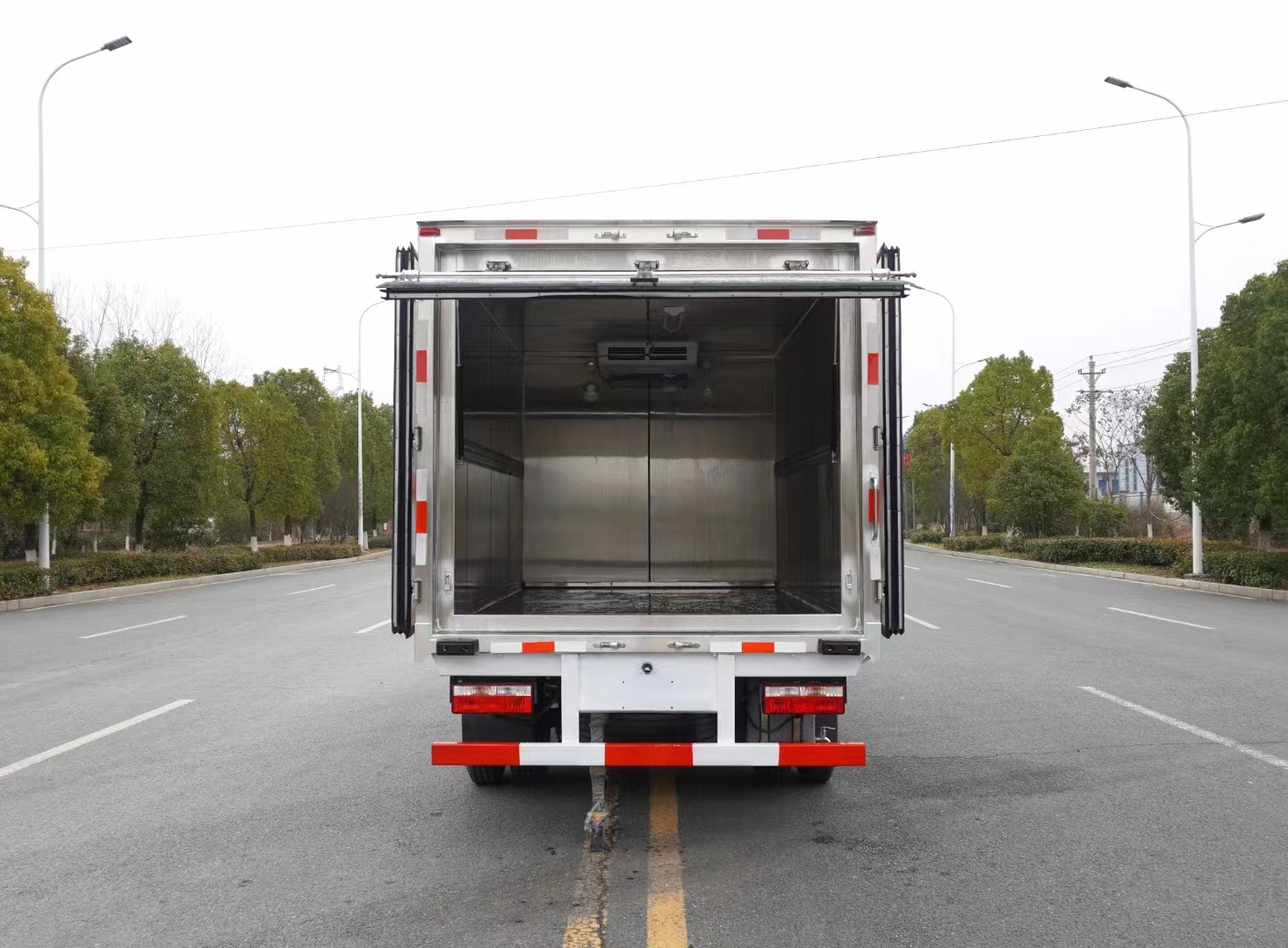 改裝要求:廂體采用內(nèi)不銹鋼外玻璃鋼制作,冷鏈專用保溫板,廂體右側(cè)前開單側(cè)門,紫外線、噴霧消毒,雙層門,廂體兩側(cè)加裝防撞板,廂體密封無泄漏,鋁合金型材包邊,門框、鎖件為不銹鋼,裝配零下5度制冷機組,其余標(biāo)配。