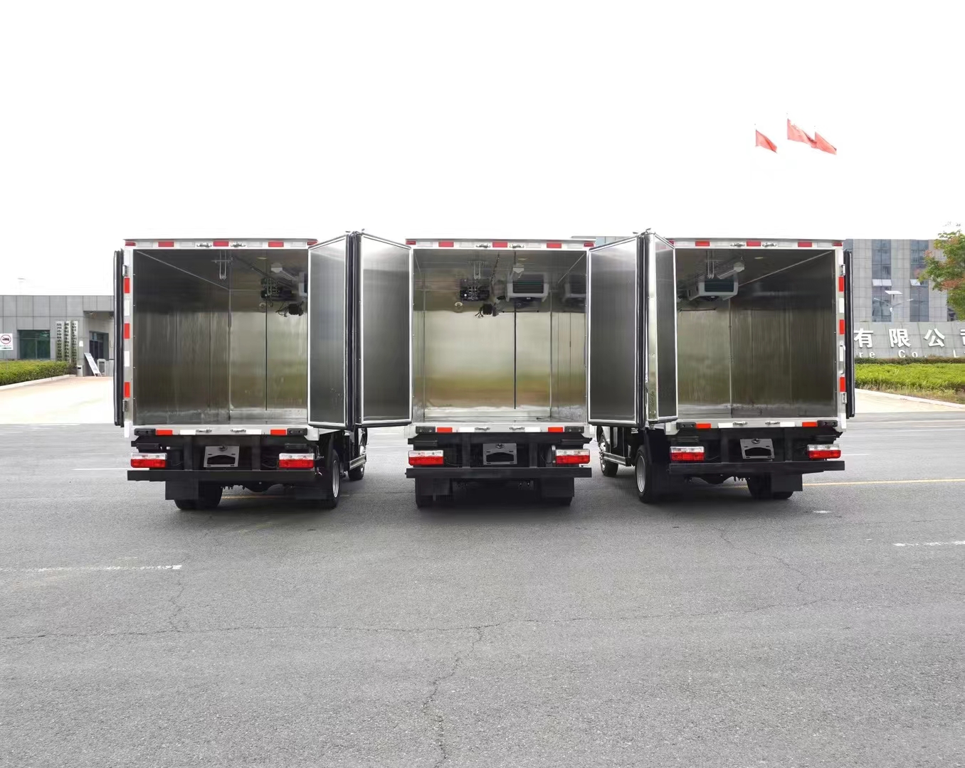 制冷系統:病死豬運輸車是由車載制冷機組實現無害化處理車內部空間氣體的流通和衡溫,為保證病死豬在運輸過程中對溫度的要求,保證車廂內溫度維持在-5°到-15°,有效減弱疫情病原的活性,保證工作人員的生命安全,在駕駛室就能實時監測到車廂內溫度的變化,便于控制溫度。