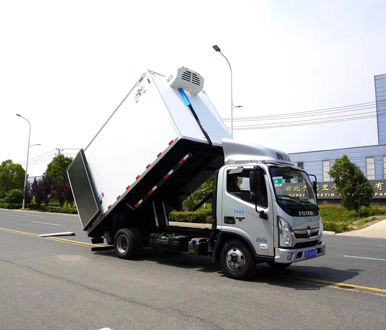 動物無害化處理車主要配置:內全不銹鋼廂體,制冷系統,電動拖拽系統,噴霧消毒,紫外線殺菌燈,自卸舉升系統,廢液污水收集槽收集箱。