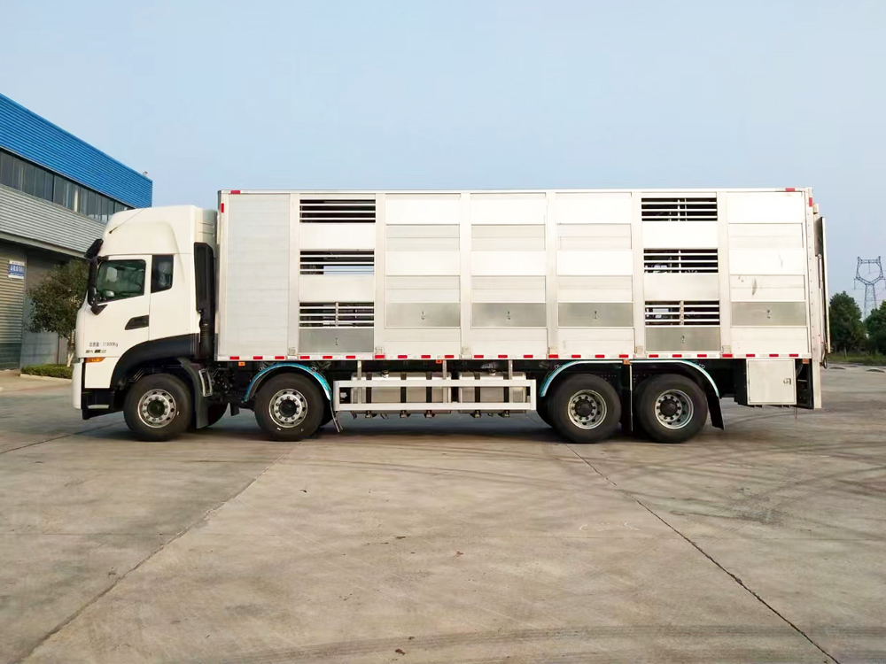 9、監控系統:360°全景全方位監控,1080P超清畫面,內置法拉電容,保證緊急狀況數據不丟失,配備視頻監控和溫度報警裝置,通過視頻監控,在駕駛室內可實時觀察車廂內每層豬的情況,通過溫度報警裝置,可在駕駛室內操作對車廂溫度進行調整。