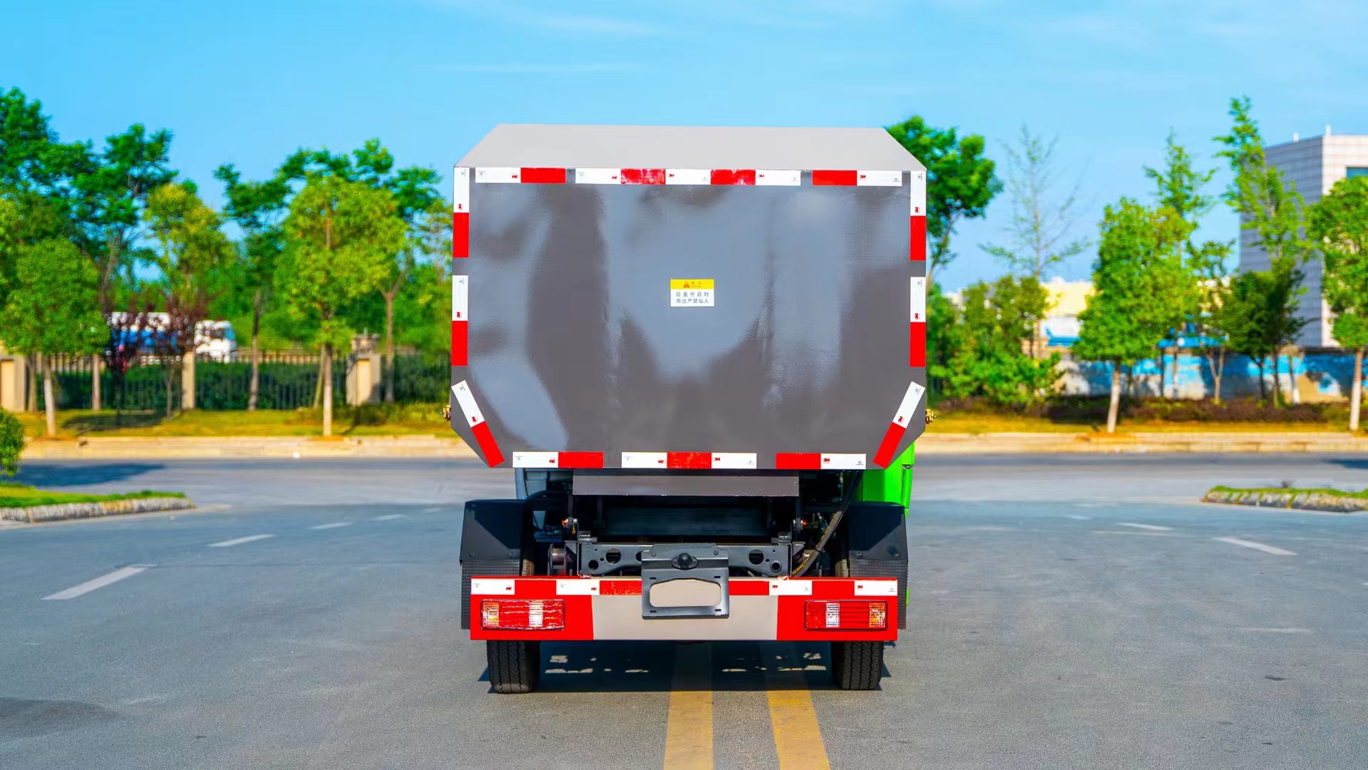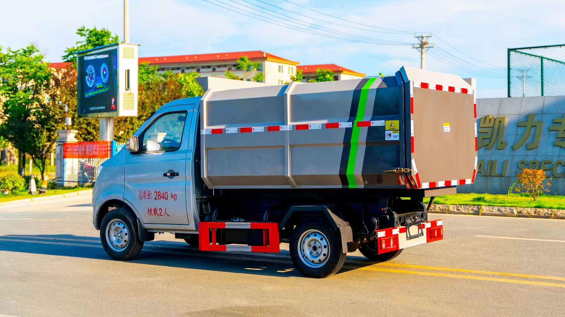 上裝主要配置:箱體采用Q235碳鋼板焊接而成,箱體邊三底三,手動多路閥,箱體底部油缸舉升自卸,側(cè)面提升機可選鏈條式、拉桿式機構(gòu),側(cè)面可掛120升或240升標(biāo)配塑料垃圾桶,液壓尾門,整車一次工作循環(huán)時間小于等于30S,非常適用于城市街道和狹窄小區(qū)內(nèi)部的垃圾桶內(nèi)垃圾收集工作。
