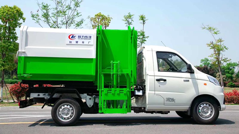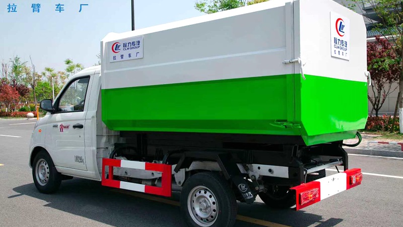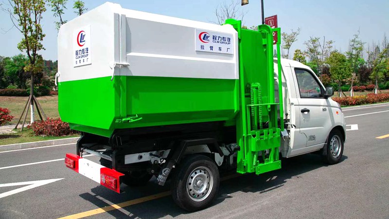 箱體采用邊三底四優質鋼板制作,箱體前部側面帶有掛桶提升機構,可搭配120升或240升塑料垃圾桶,自動舉升垃圾桶倒入垃圾,提 升機頂部機械翻蓋,箱體底部雙液壓缸舉升自卸,箱體后方設有擋水槽,尾部裝有橡膠密封條,防污水滴漏。